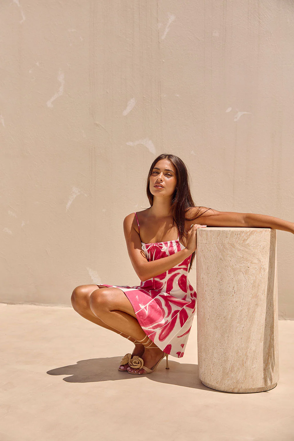 Introducing our new exclusive Ada Floral print! The Tiana Dress is made from a high quality natural linen cotton blend fabric and features adjustable rouleau straps with drawstring tie neckline, gathered bust, fitted waist, contrast white bind piping details and an a-line mini skirt. Dress it up with the Bobbi Heels! Designed exclusively by Sabo.